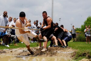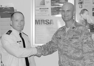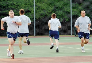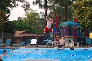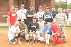 Master Sgt. Shannon Midgette, 43rd Force Support Squadron; Tech. Sgt. Tiffanie Dixon, 43rd Medical Support Squadron; and Senior Airman Marc Rodriques, 43rd Comptroller Squadron stand, with Col. James Johnson, 43rd Airlift Wing Commander, June 24, in the Airman and Family Readiness Center. The Airmen